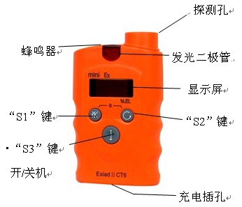 4、“S1”鍵:為復(fù)用鍵(即一鍵多能)。正常狀態(tài)下按下此鍵為消音鍵;在設(shè)定狀態(tài)下具有“▽”,對(duì)設(shè)定數(shù)值減小的功能;在氣體標(biāo)定狀態(tài)時(shí)為確定鍵。